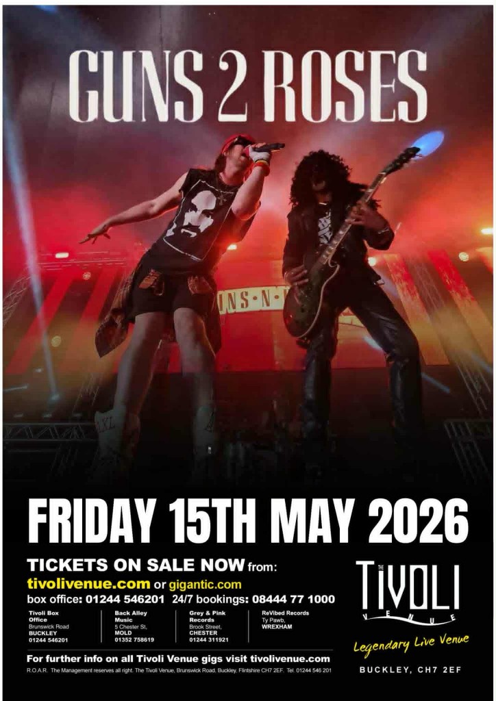 The Most Notorious Guns N Roses Tribute In History Est 2002 Returning to the Tiv in 2026. They’ve also performed in.. AUSTRALIA, BAHRAIN, BELGIUM, CZECH REPUBLIC, DUBAI, ESTONIA, FRANCE, GERMANY, GREECE, HOLLAND, HUNGARY, INDIA, IRELAND, ITALY, LATVIA, MALTA, NEW ZEALAND, NORWAY, POLAND, PORTUGAL, ROMANIA, SLOVENIA, USA. THE ONLY GNR TRIBUTE TO PLAY LIVE WITH 4 DIFFERENT MEMBERS OF GUNS N ROSES. TV & RADIO APPEARANCES ON : BBC, ITV, CHANNEL 5. Guns 2 Roses are the longest running, closest looking and most internationally recognized GN’R tribute in the world.