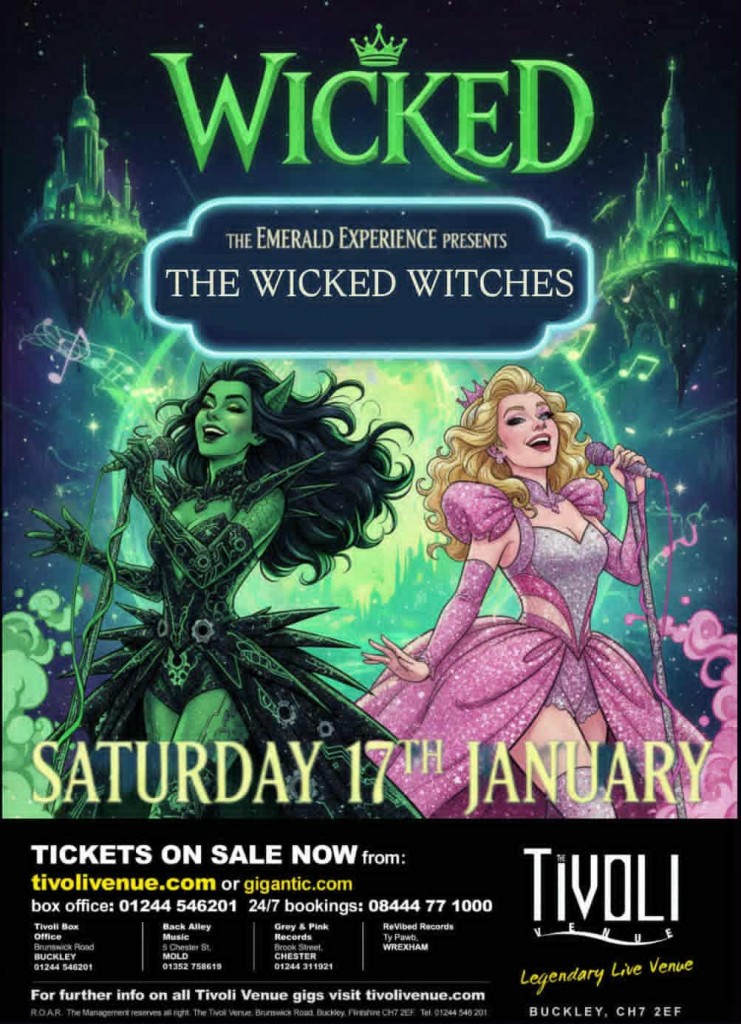 🎤 The Emerald Experience: A WICKED Singing Pop Show 💚 ✨ Featuring Elphaba and Glinda ✨ Join us for a spellbinding evening celebrating the magic of WICKED with stunning pop-style performances of your favourite songs! 📅 Saturday, 14th January 🎭 The Emerald Experience – where Oz meets pop! Don’t miss this spectacular musical event that’ll have you defying gravity!